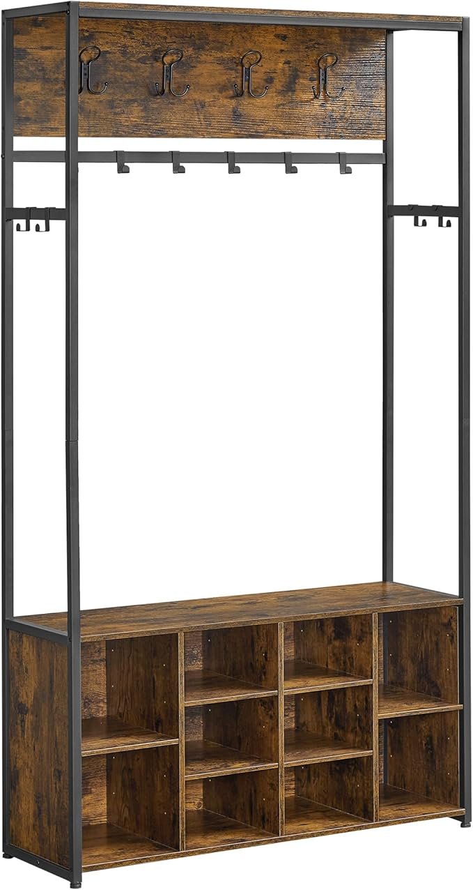 【INDUSTRIAL CHARM】Its minimalist design, paired with a classic colour palette of rustic brown and ink black, makes this industrial-style hallway furniture the perfect showcase for your favourite outfits