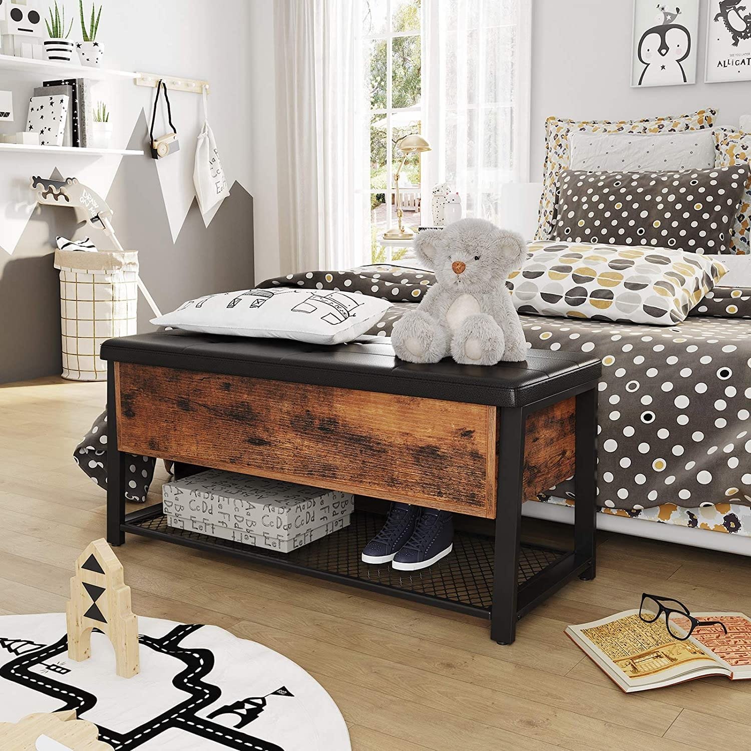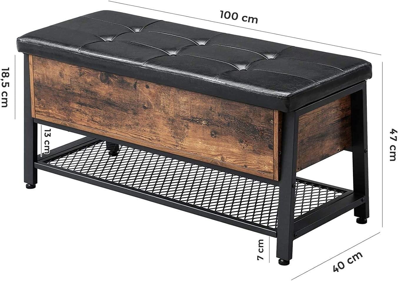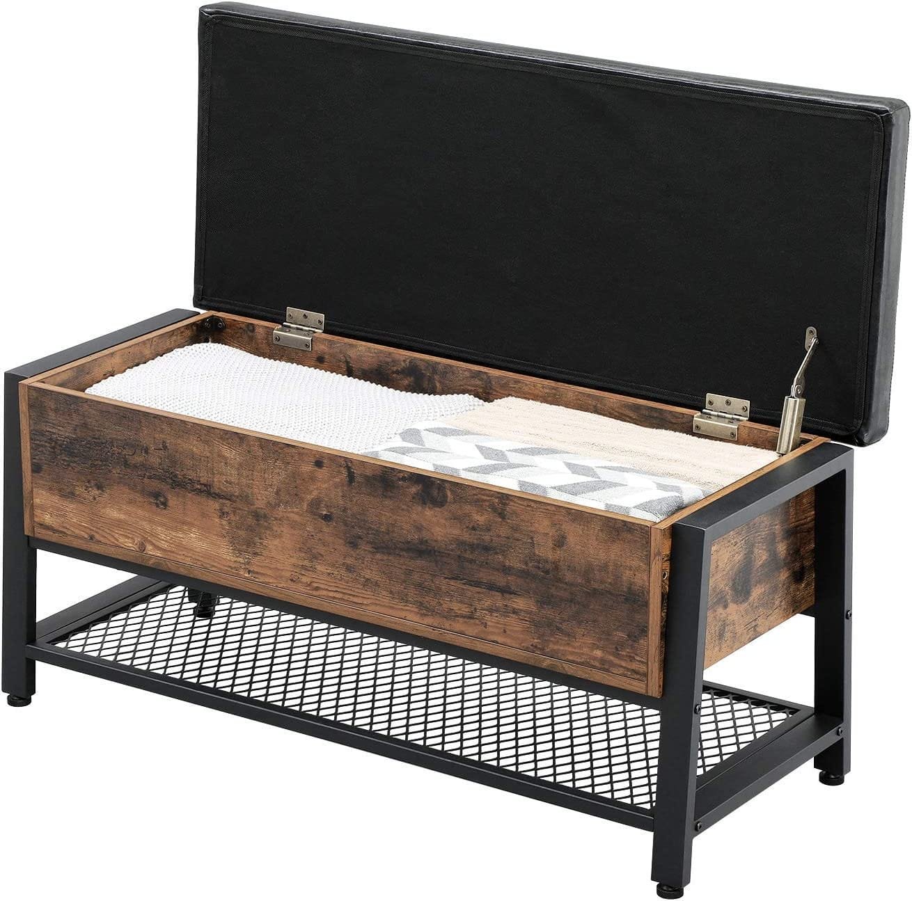 VASAGLE industriell sko förvaringsbänk, sänggavelpall med vadderad, stålram, 120 kg