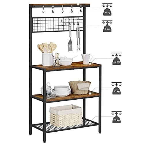 VASAGLE Industrikök Bagarställ, köksenhet med förvaringshyllor, rustikt brun