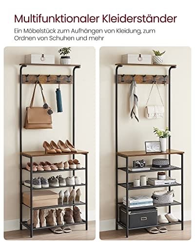 [Stabilitet och styrka] Tillverkad av slitstarkt träspån och en stålram, är detta klädställ redo att tjäna hela din familj. Den ger ett stabilt stöd för dina favoritskor och kläder och följer dig år efter år