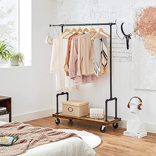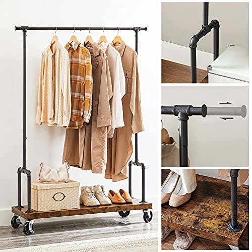Låt kläderna stå i centrum: Om dina kläder behöver hålla sig utanför en pytteliten garderob, varför inte visa dem med detta smarta klädställ? Den rustika bruna tonen och svarta passpoalerna framhäver skönheten i din outfit samtidigt som de avger en urban, industriell charm