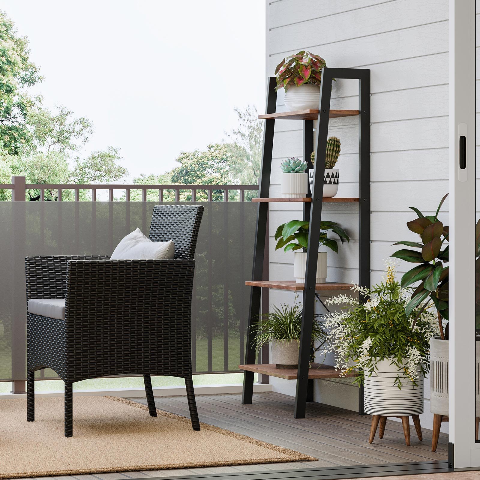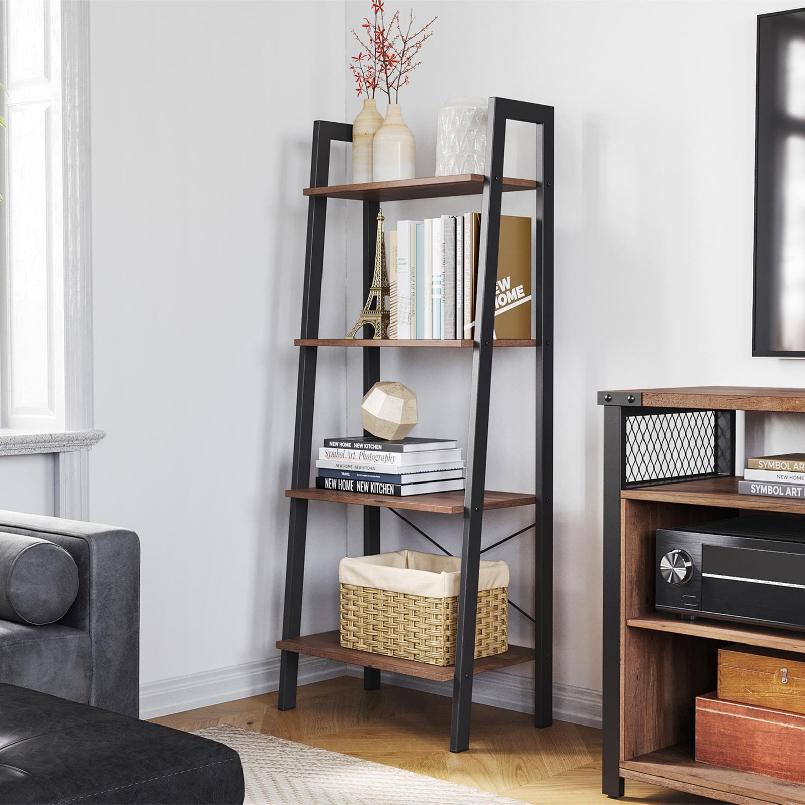 Specifications:Color: Hazelnut Brown, BlackMaterial: Particleboard, SteelProduct Size: 12.6”D x 22”W x 54.1”H (32 x 56 x 137.5 cm)Product Weight: 25.4 lb (11.5 kg)Total Max. Static Load: 213 lb (96.5 kg)Package Contents:1 x Ladder Shelf1 x Assembly Kit1 x Anti-Tip Kit1 x Instructions
