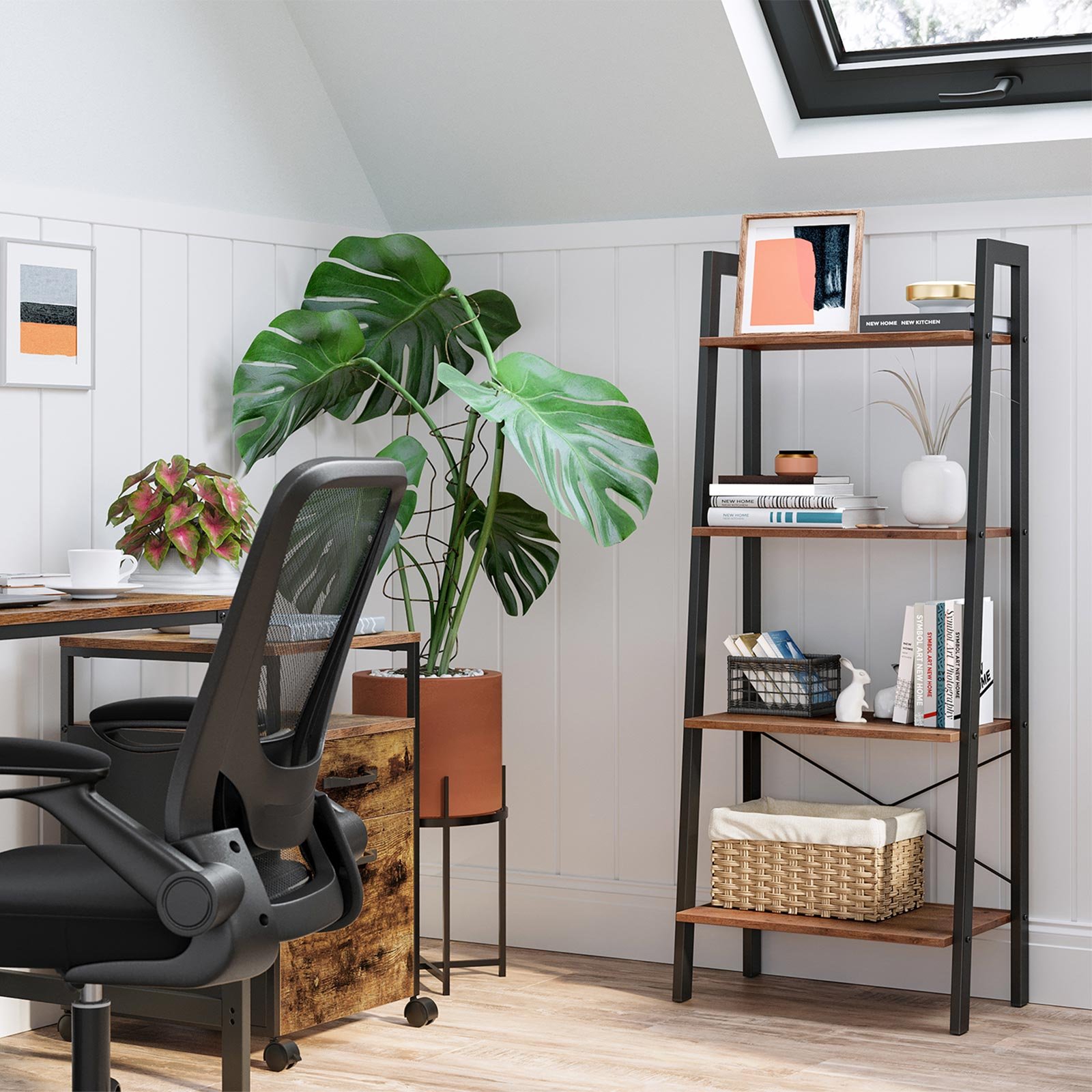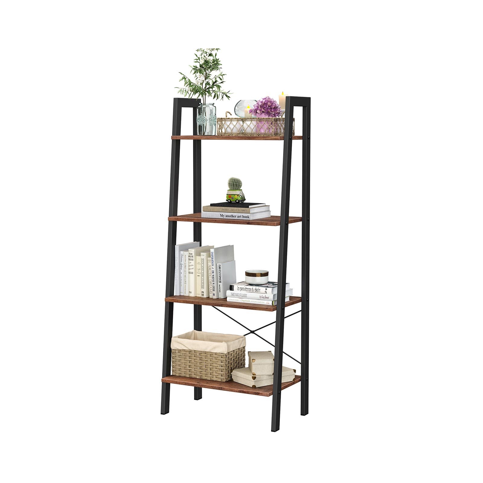 [Stable] Designed in a solid frame, reinforced by X-shaped bars, balanced by adjustable feet, and secured by an anti-tip kit, this ladder shelf features great stability