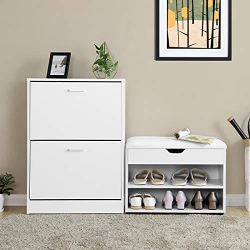De två nedre facken kan lagra skor och under det gångjärnslocket finns det också ett förvaringsfack, du kan lagra användbara föremål som sko rengöringsredskap, handskar och andra små föremål