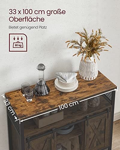 VASAGLE matskänk, köksskåp, förvaringsskåp, buffébord, rustik brun och svart