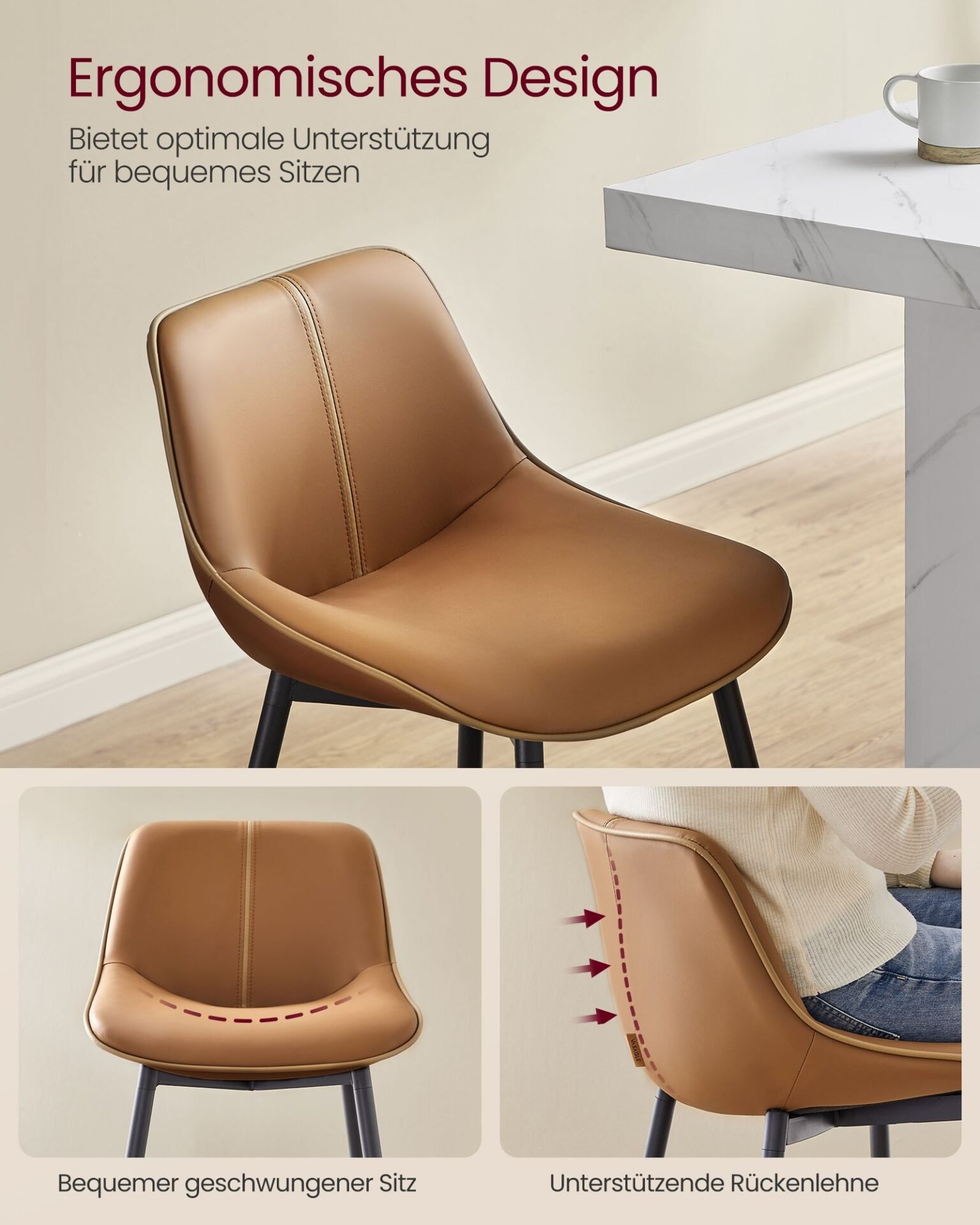 [Great stability] Say goodbye to unstable seats! Our kitchen chairs have a sturdy steel frame and adjustable legs, which ensure stability even on slightly uneven surfaces and protect the floor from scratches