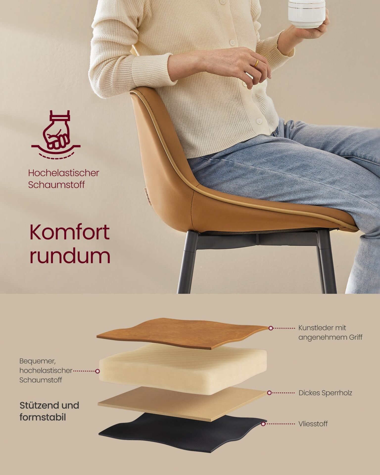 Material: Rubber Wood, Steel, PU (Polyurethane)