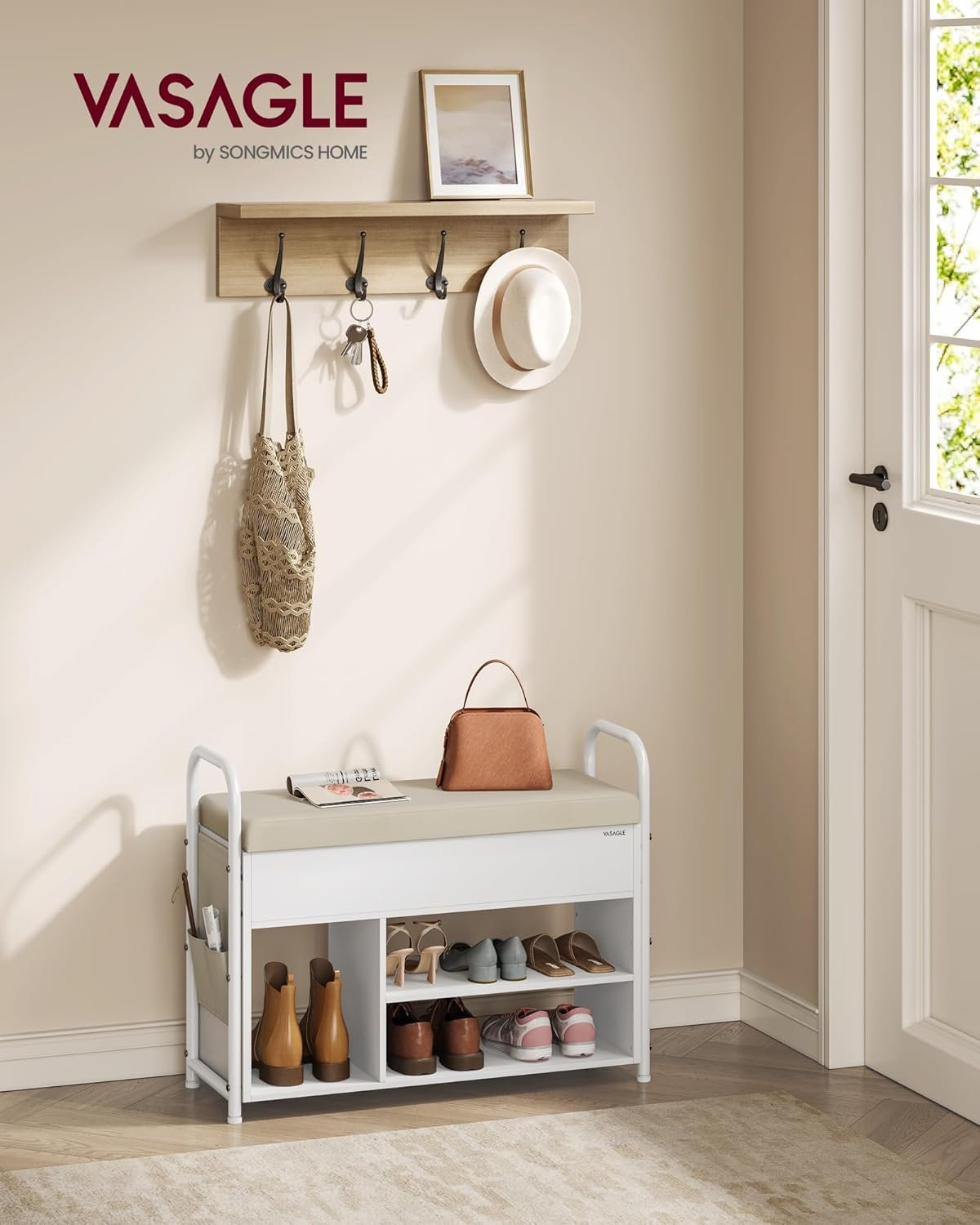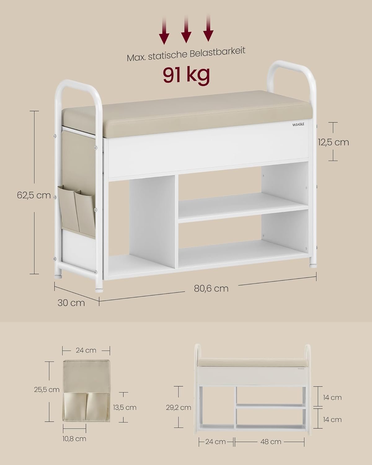 Large storage space: the spacious compartment under the lid is perfect for storing gloves, dog leads and umbrellas. The shelves are suitable for different shoes