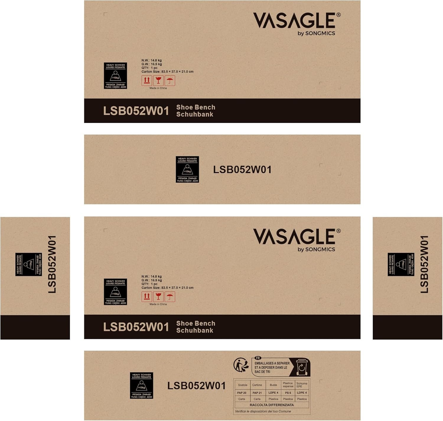 VASAGLE Shoe Bench, Shoe Rack, Entryway Furniture, Inner Storage Under The Lid, PU Pockets, Convenient Handles, for Entryway, Living Room, Bedroom, Rustic Brown and Ink Black ULSB052K01