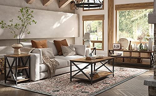 Blanda Farmhouse med industri … för att få en möbel som är både bekväm och elegant, som det här sidobordet. Accentuerad med X-formade ramar och baserat på två toner av rustikt brunt och svart, kommer det att vara en tilltalande pjäs som talar för sig själv