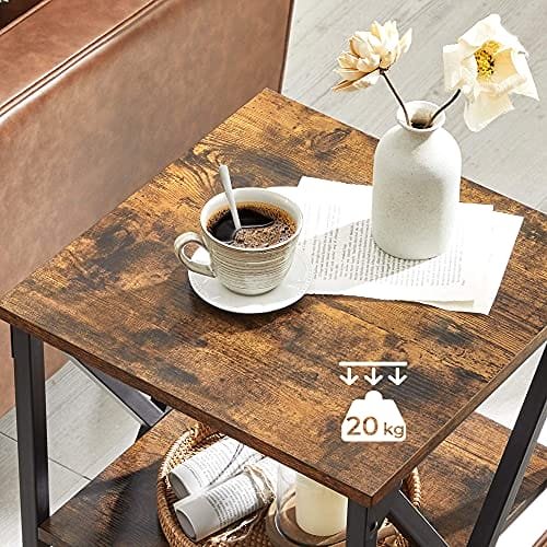 Specifikationer:- Färg: Rustik Brun, Svart Material: Spånskiva, Stål Produktstorlek: 15,7″L x 15,7″B x 23,6″H (40 x 40 x 60cm)- Produktvikt: 15,6lb (7,8 kg)- Max. Statisk lastkapacitet per Nivå: 44 lb (20 kg) Paketinnehåll: – 1 x sidobord – 1 x monteringssats – 1 x instruktioner
