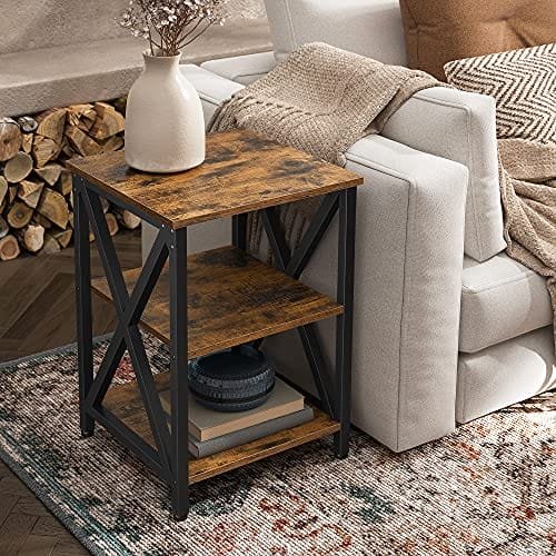 Vasagle sidobord, x-formad stålstomme, sängbord, 40 x 40 x 60 cm, brun och svart