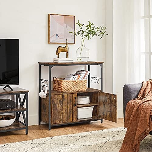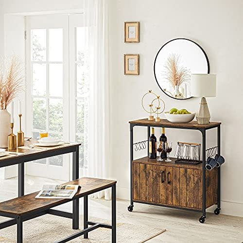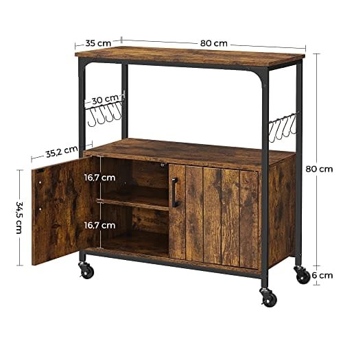 Specifikationer:- Färg: Rustik brun, svart Material: spånskiva, stål Produktstorlek: 31,5″ L x 13,8″ B x 31,5″ H (80 x 35 x 80 cm) – Produktvikt: 43lb (19,5 kg) – Max statisk belastningskapacitet på Översta hyllan: 66lb (30 kg) – Max statisk belastningskapacitet för varje hylla bakom dörrar: 22lb (10 kg) Paketinnehåll: – 1 x köksö – 1 x tillbehörssats – 1 x tippskyddssats – 1 x instruktioner