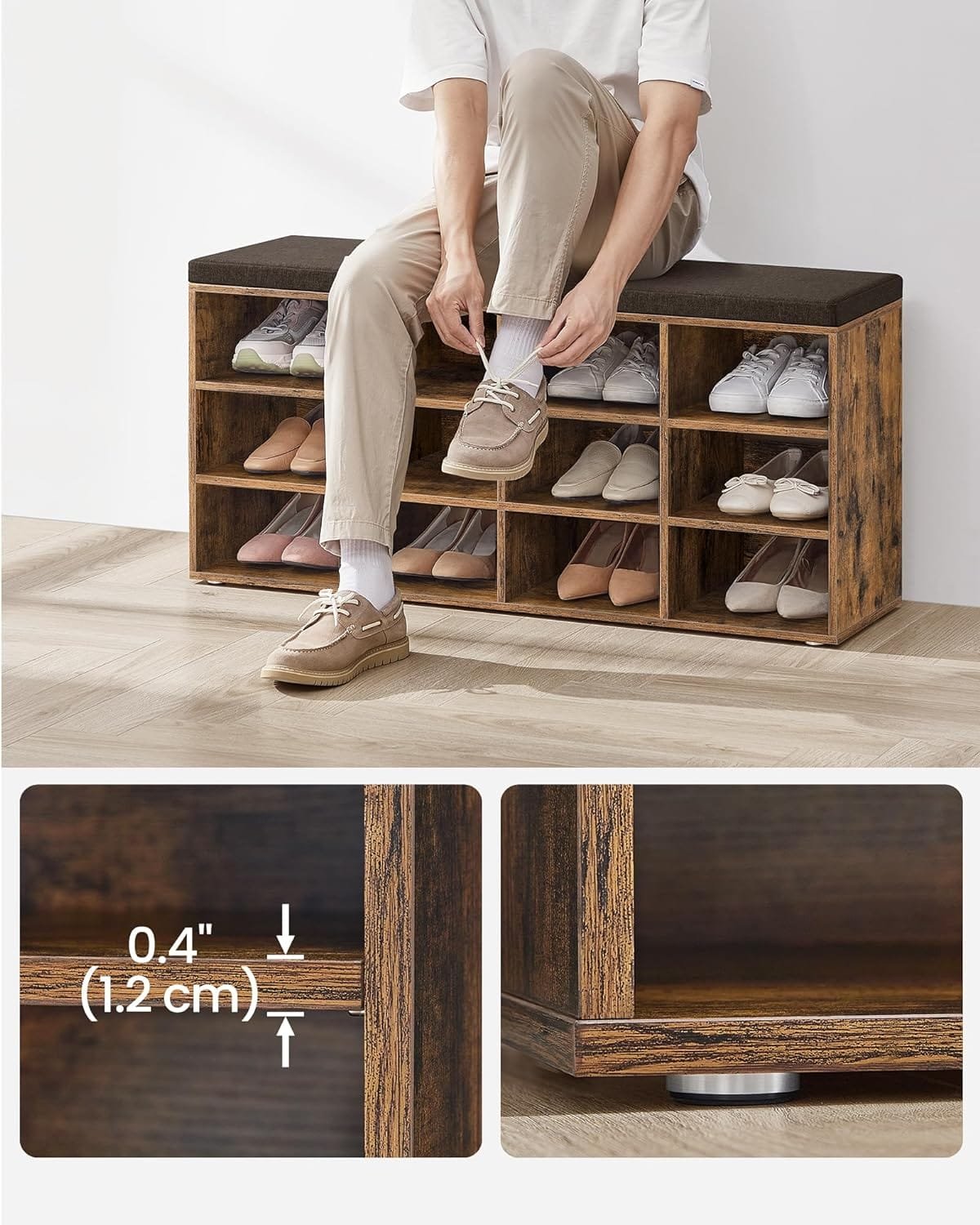 SkobänkVASAGLE Skobänk, Förvaringsbänk med vadderad sits, 30,3 x 104 x 48 cm, Rustikbrun
