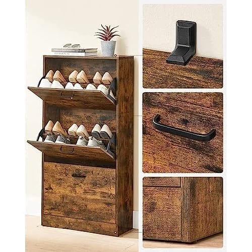 skoskåpVasagle skoskåp med 3 flipdörrar, 3-nivå träförvaringsskåp, rustik brun