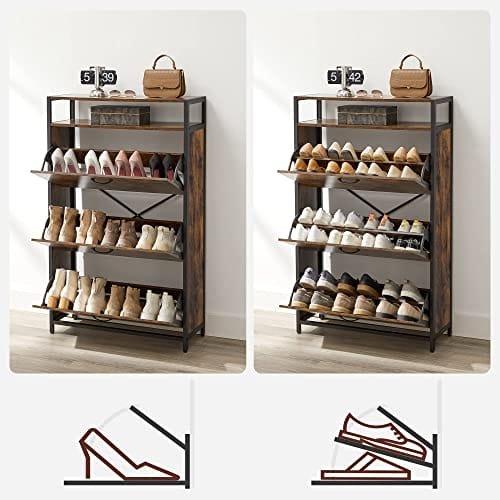 VASAGLE Skoskåp med 3 klaffar, skoställ, i korridoren, för 15-24 par skor, brun/svart