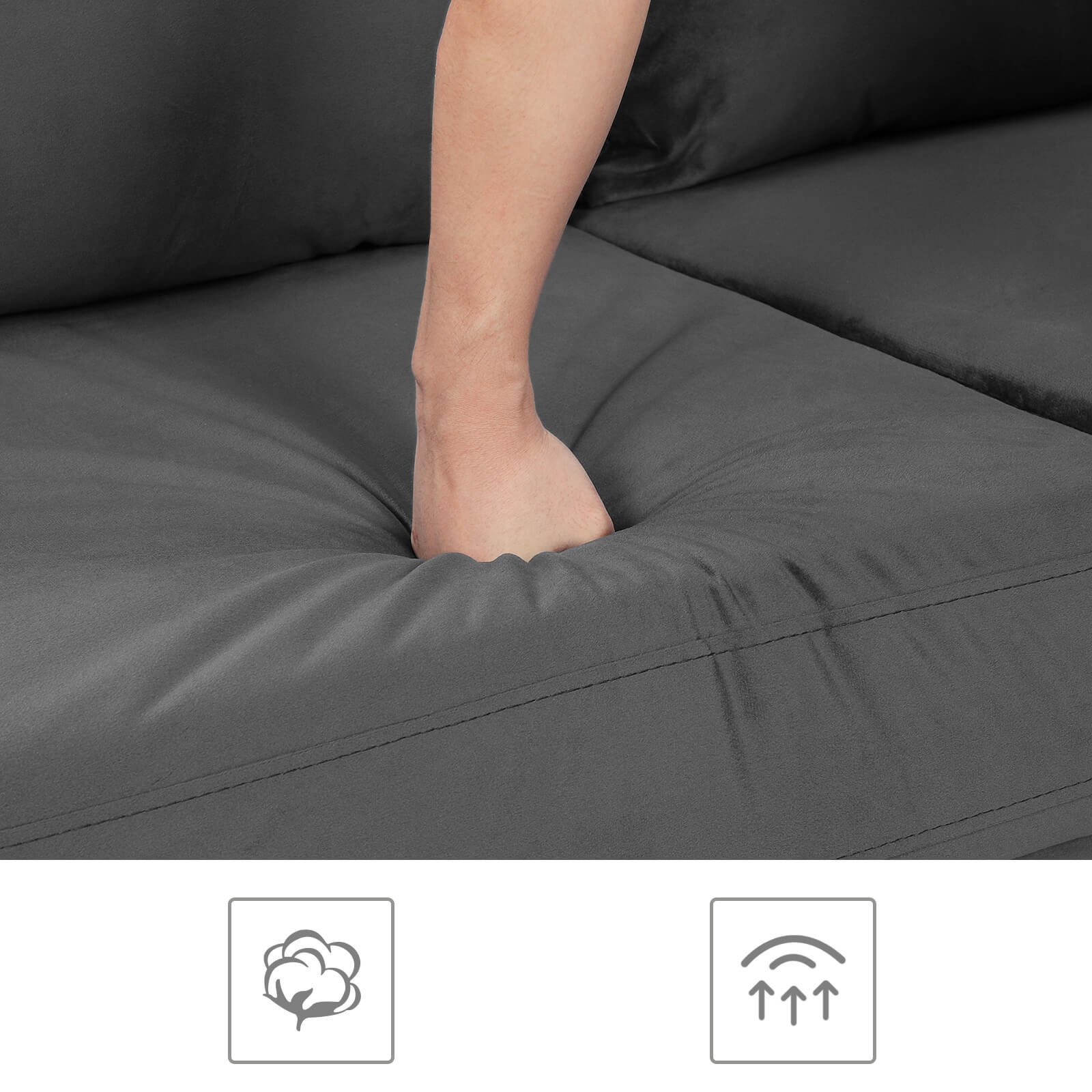 Specifications:- Colour: Grey- Material: Velvet, Foam Padding, Eucalyptus Wood, Iron- Product Size: 190 x 82 x 84 cm (L x W x H)- Product Weight: 35 kg- Max. Overall Static Load Capacity: 300 kg Package Contents:- 1 x Sofa- 1 x Accessory Kit- 1 x Instructions (EN, DE, FR, ES, IT)