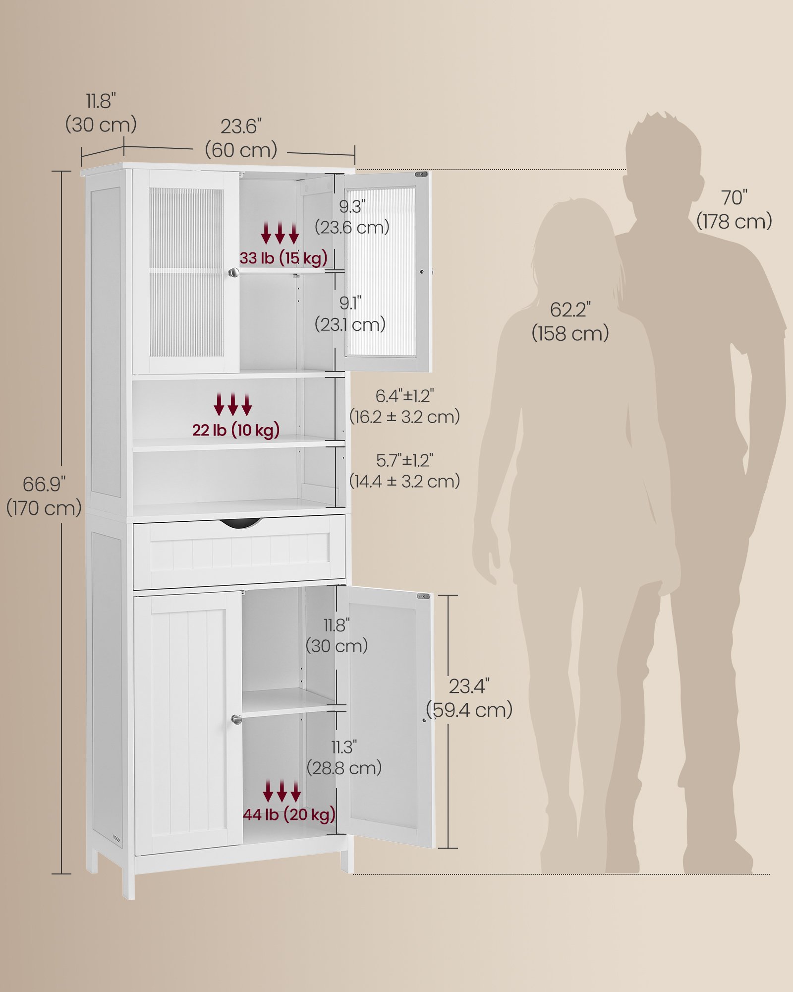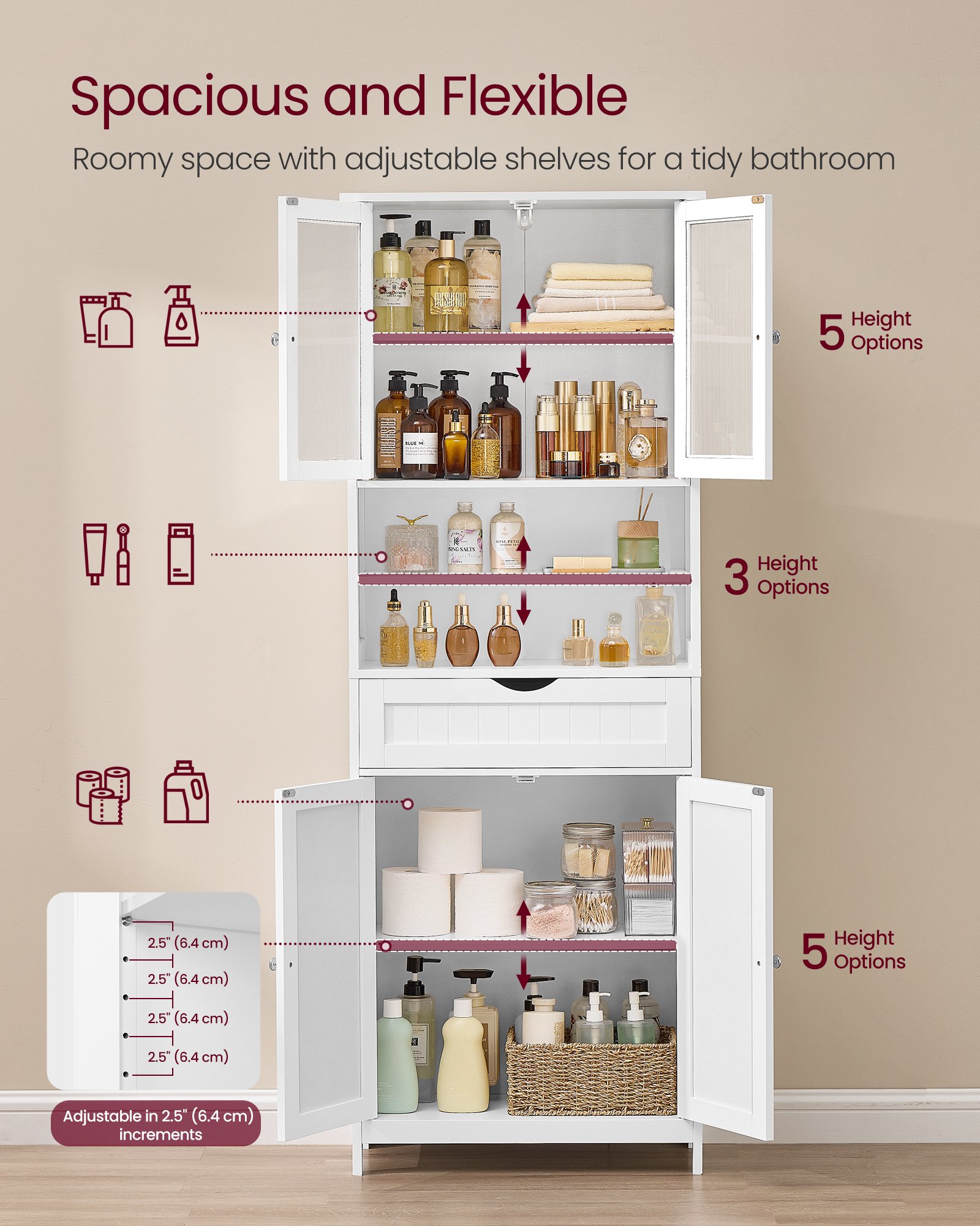 Built to Last, Easy to Clean: Constructed from premium MDF panels with a smooth finish, this tall bathroom floor cabinet is designed to withstand daily use and can be wiped clean with ease