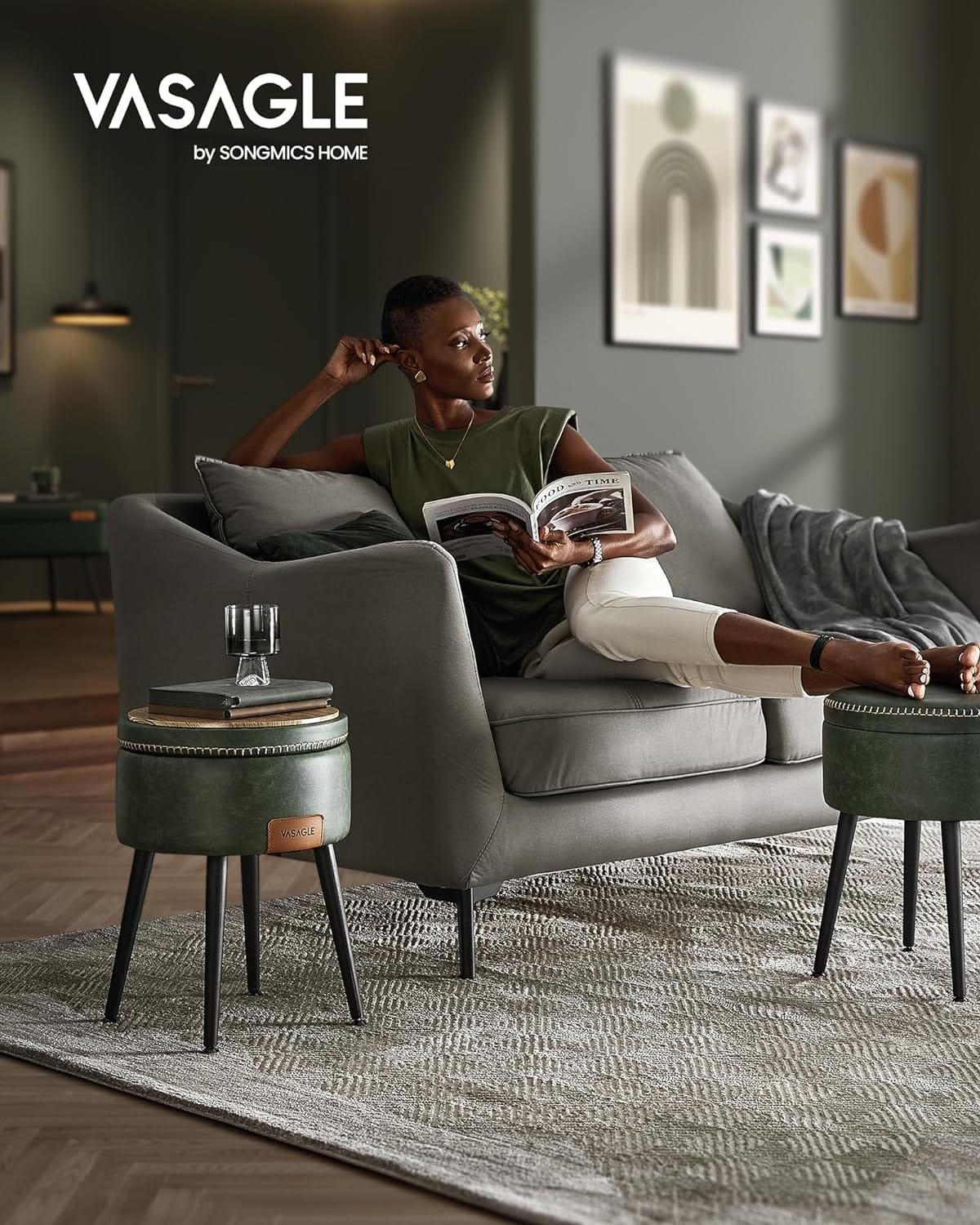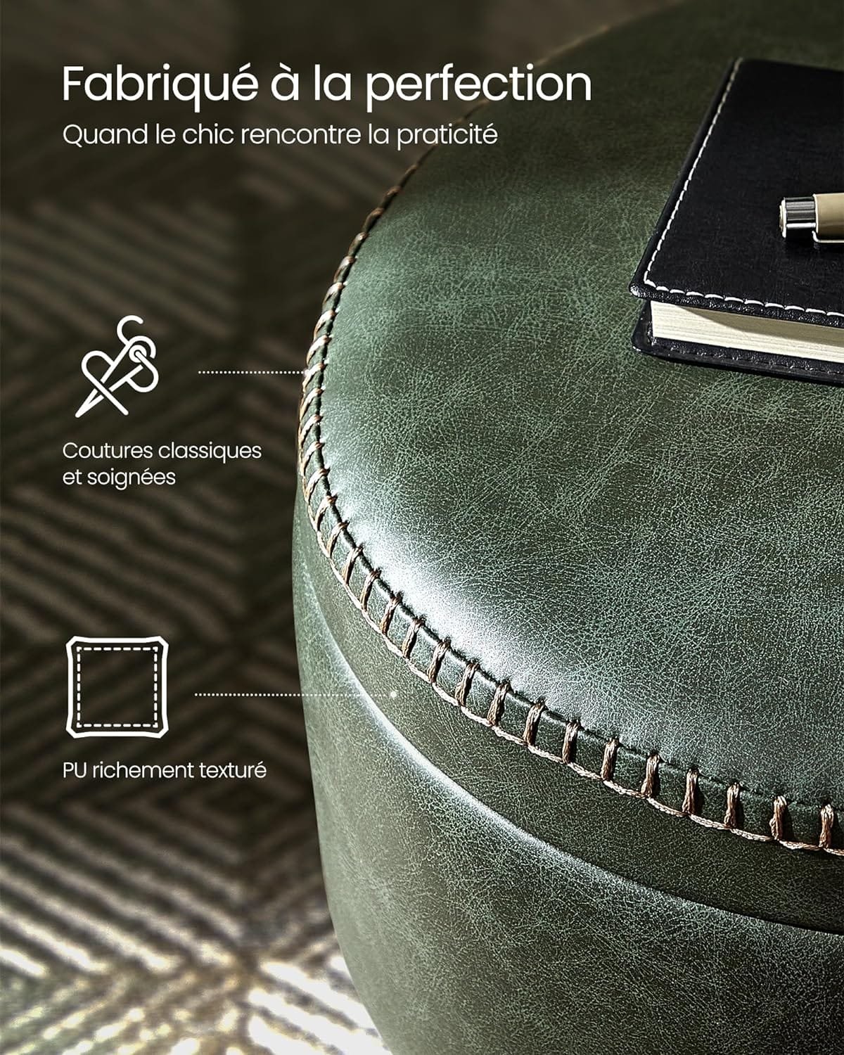 VASAGLE Storage Ottoman, Sminkbordspall, PU med sömmar, Forest Green