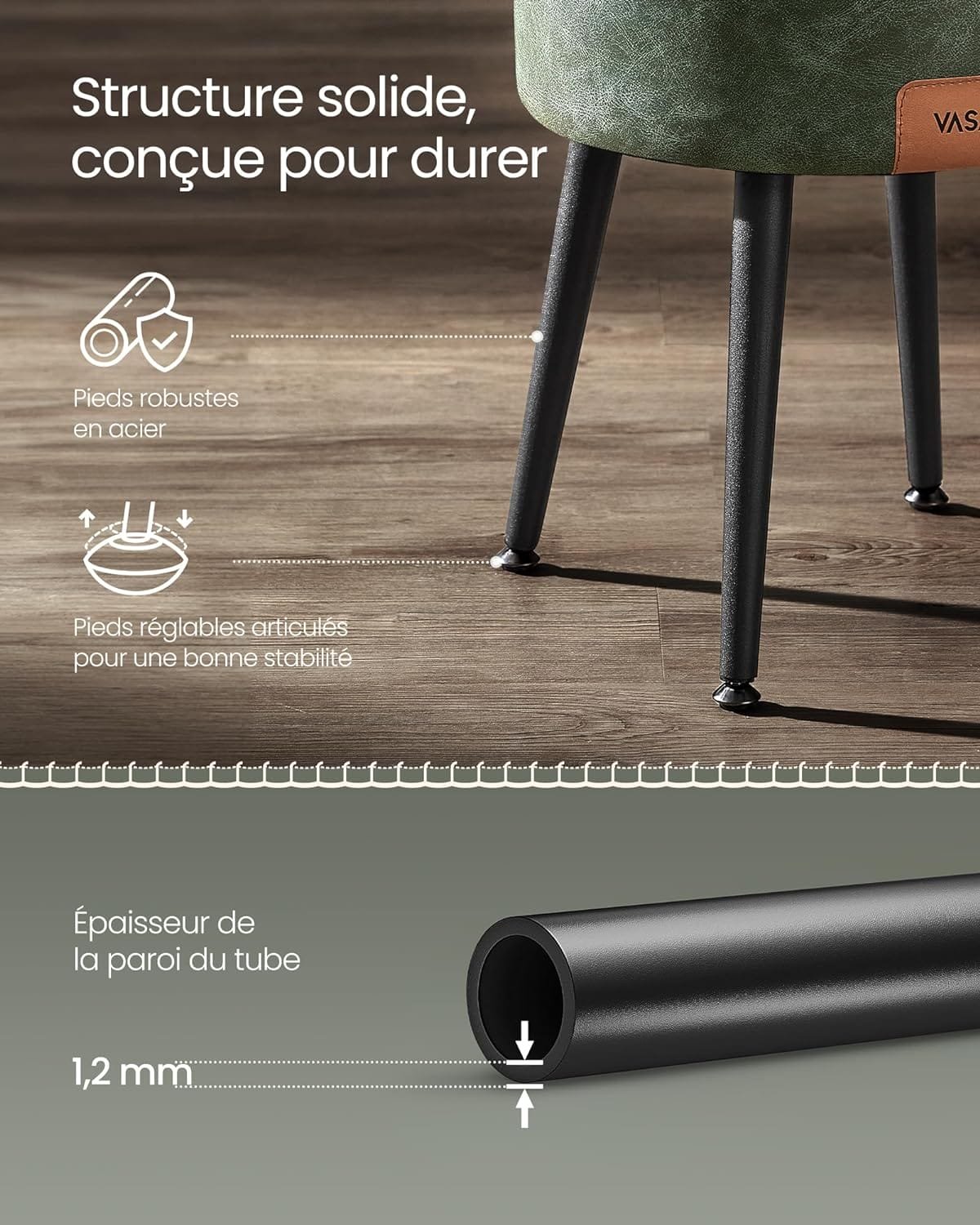 [Tillverkad för att hålla] Denna toalettbordspall är gjord av 4 kraftiga stålben och är förstärkt med en 1,2 mm tjock vägg. Utrustad med ledade justerbara fötter, kan den bära upp till 150 kg, vilket säkerställer en lång livslängd