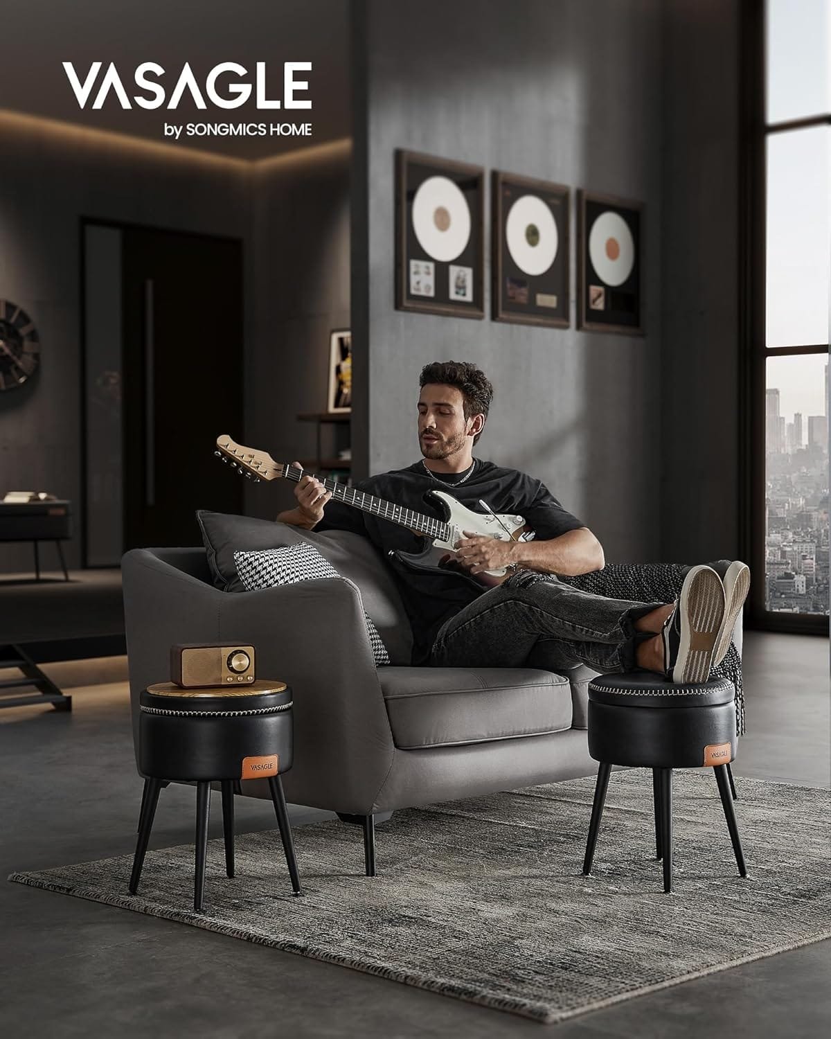 Storage OttomanVASAGLE Storage Ottoman, Vanity Chair Pall, Rund Storage Seat, Laster 330 lb, Ink Svart