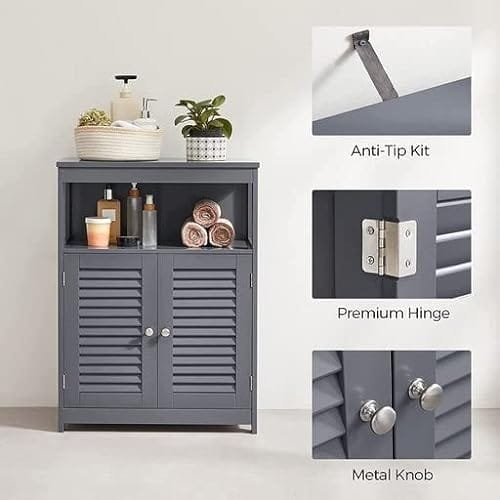 Vasagle trä badrum golvskåp, lagringsorganisatör rack, kök skåp fristående, grå