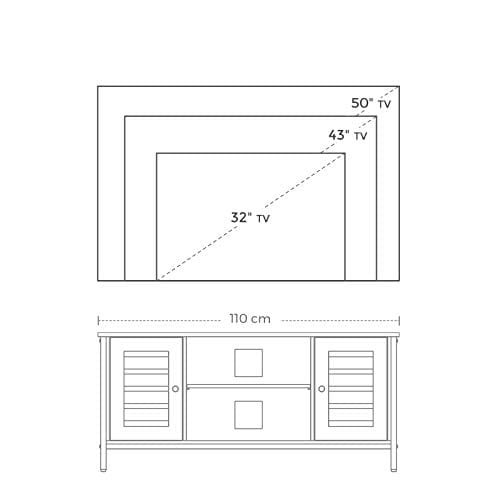 Bakom dörrarna: Dina favoritfilmer? En samling videospel? Böcker du älskar att läsa? Denna TV -stativ gör mer än bara din TV – de attraktiva Louvered Doors ger extra förvaringsfunktion till ditt vardagsrum och är full av stil
