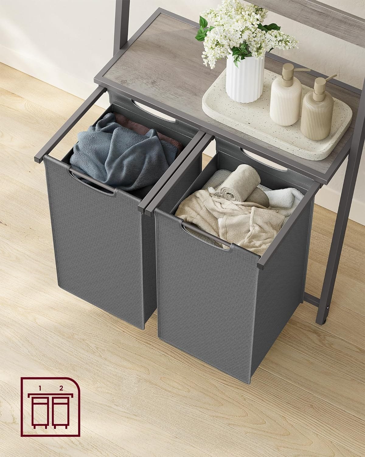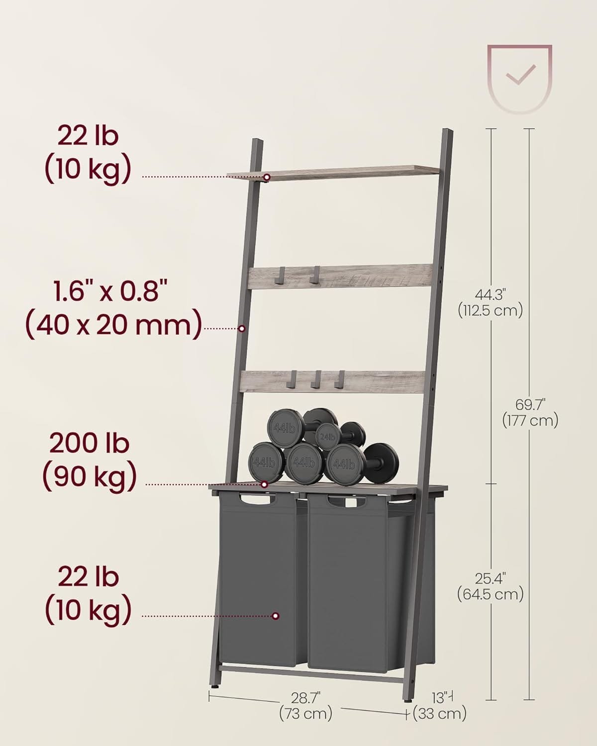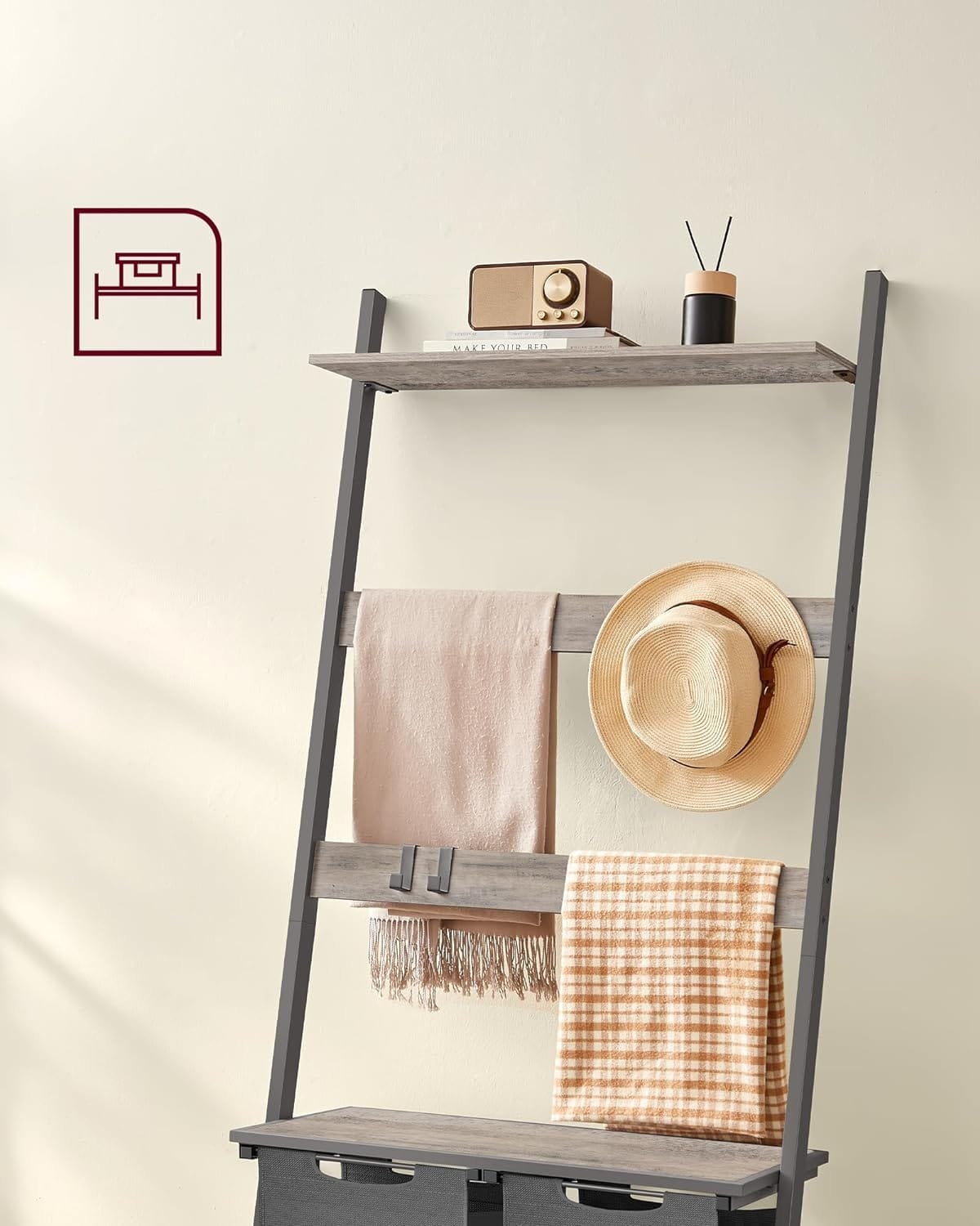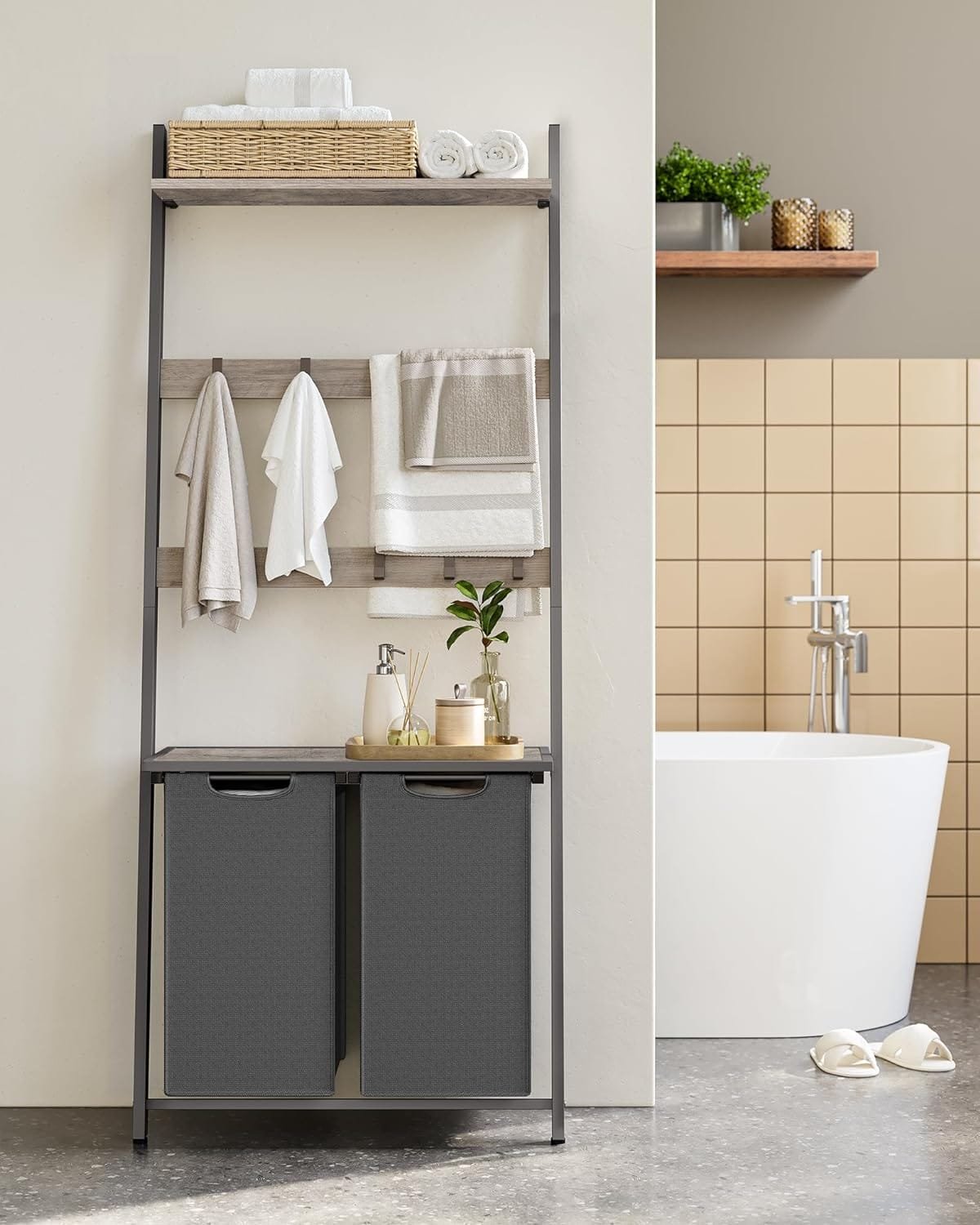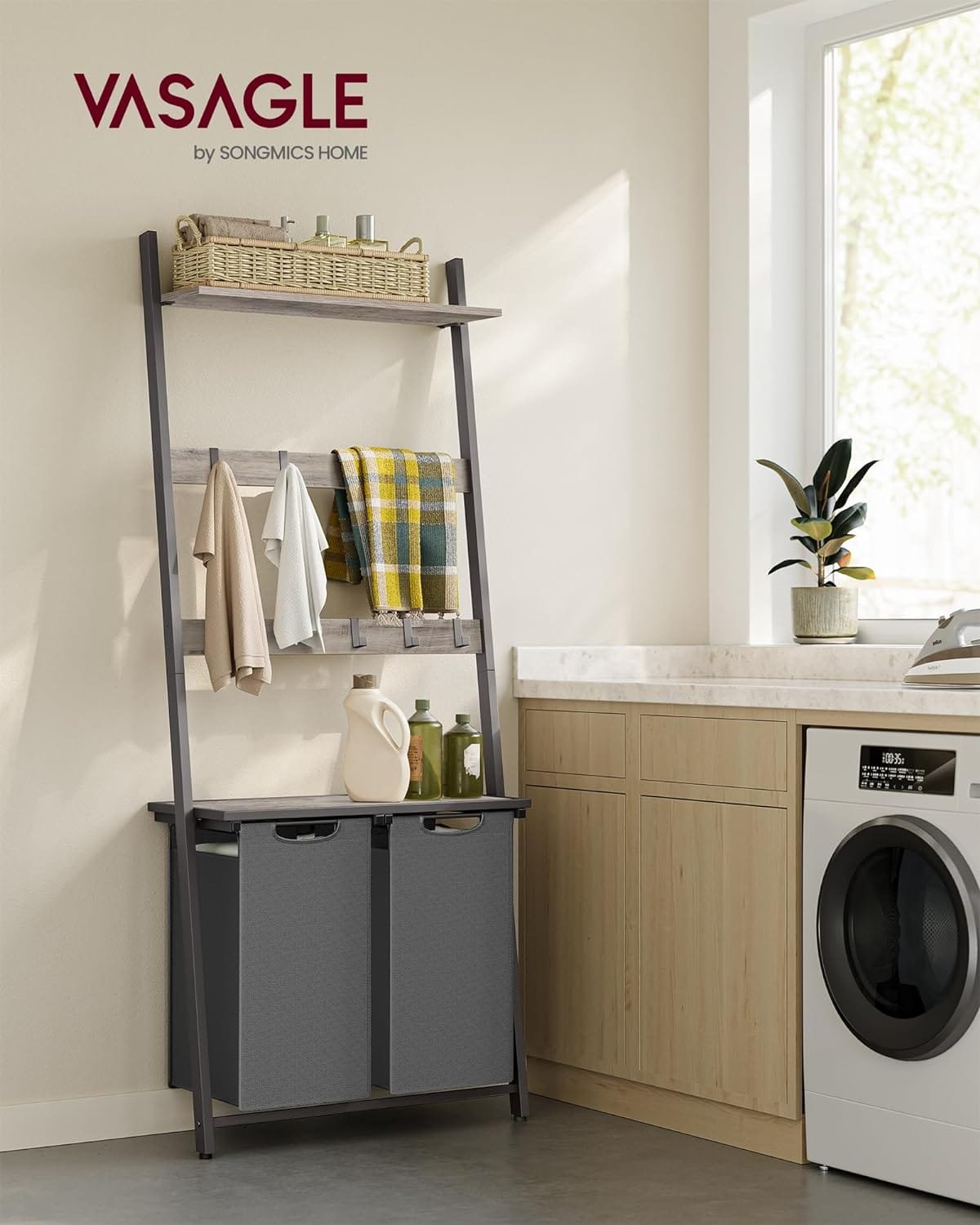 VASAGLE tvättkorg med stege, handduksställ med tvättkorg, steghylla, badrumsskåp