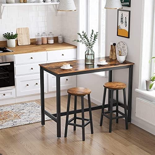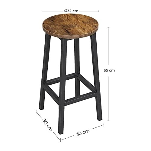 Vasagle -uppsättning av 2 Kökspallar, höga robust stålram, brun och svart
