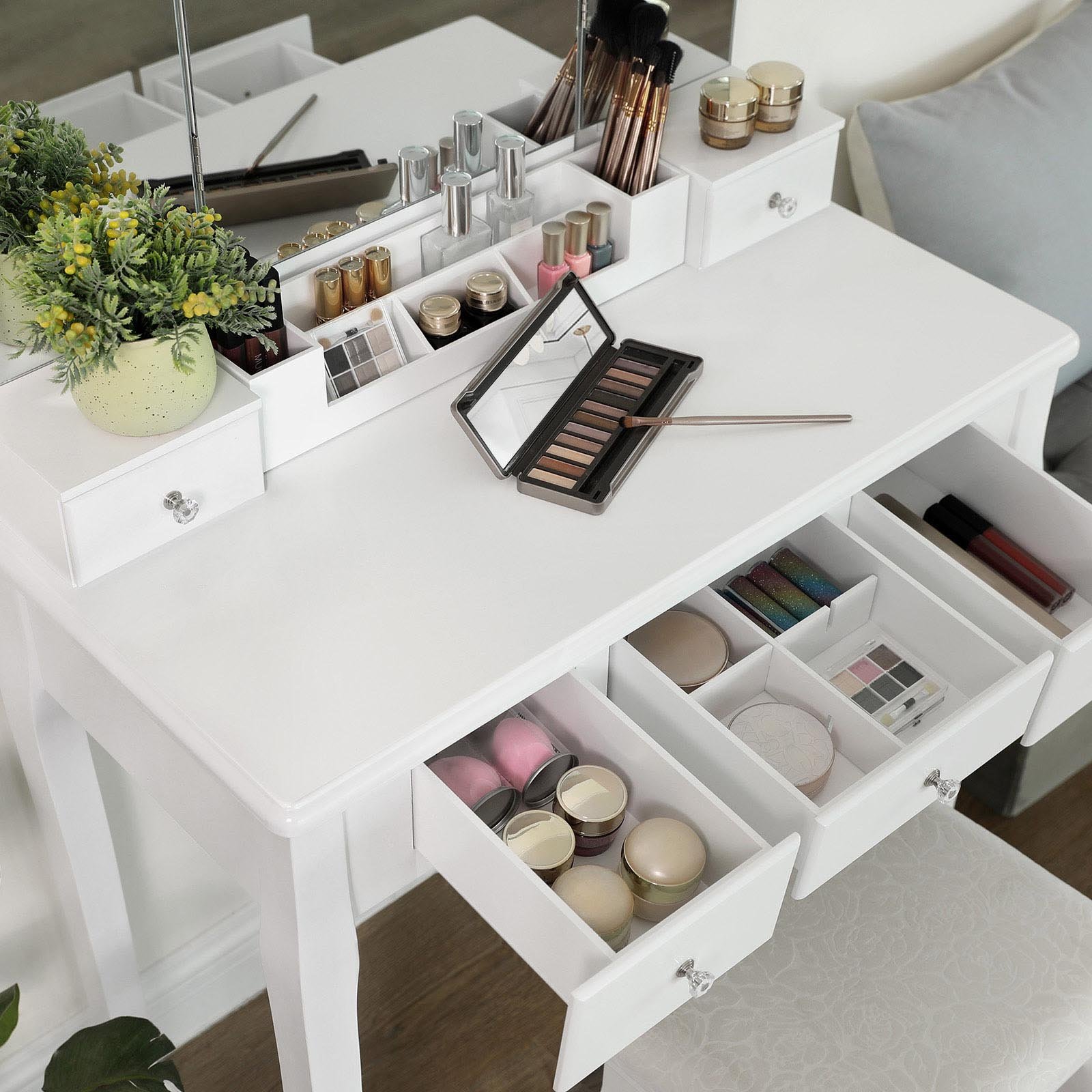TURN CHAOS INTO CALM: A girl can never have enough makeup; this clever 80 x 40 x 137.5 cm dressing table corrals all your beauty essentials into one place, all you have to do now is make yourself look stunning