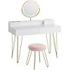 VASAGLE Vanity Table and Stool Set, Dressing Table with Tri-Fold Mirror, 3 Drawers, Makeup Table with Steel Frame, Industrial Style, Rustic Brown and Black RVT02BX