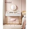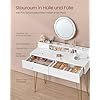 Ample storage space: Spacious table top, 2 large drawers, 1 organiser with 4 small compartments and 1 open compartment – This dressing table offers enough space for your cosmetics. Everything can be stored neatly and within easy reach
